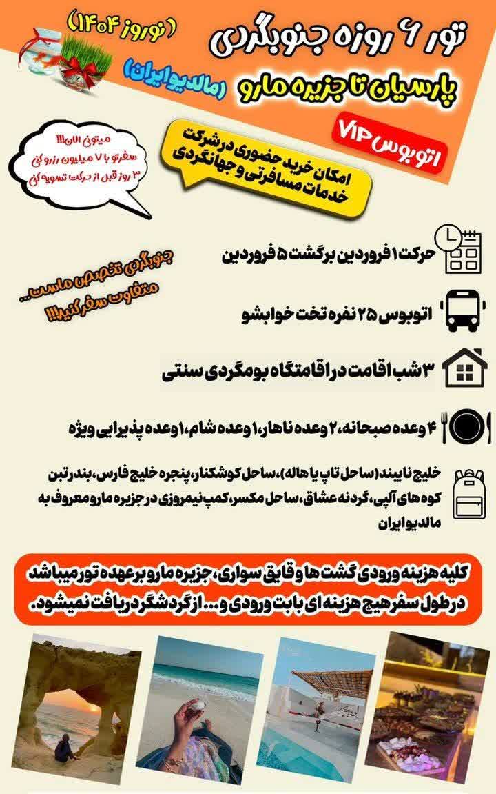 📍تور پارسیان تا جزیره مارو (مالدیو ایران)پکیج همکار ویژه نوروز 1 فروردین-سفر با افسون