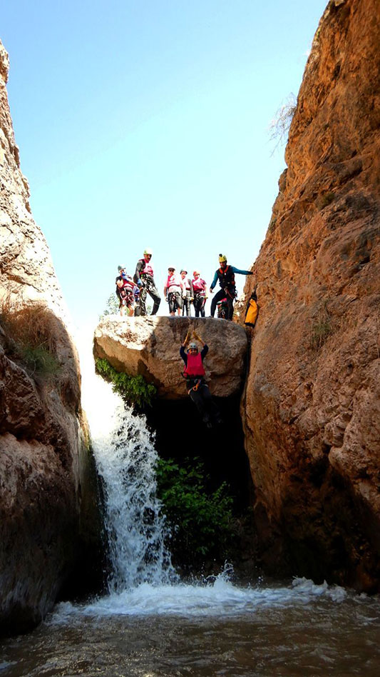 این تنگه شامل ٧ عدد فرود میباشد 🧗 بلند ترین فرود ١۵ متر میباشد ✅ تعدادی پرش اختیاری 👈 نیم ساعت پیمایش اولیه 👈 حدود ۵ ساعت داخل تنگه هستیم 👈 در پایان دره هم ۴۵ دقیقه پیاده روی داریم