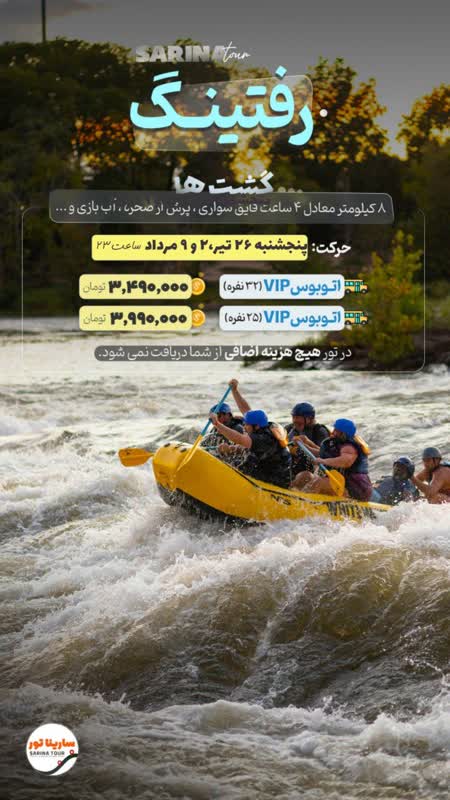 🚌اتوبوس vip مجهز 🍳 صبحانه سلف با چند آیتم سرد گرم 🍗نهار چلو جوجه با مخلفات 🍪۳ سری پذیرایی میان وعده 🍒پکمیوه 🍲آش دوغ ☕️پذیرایی چای و نسکافه 🧃پذیرایی ولکام در اتوبوس 🍉پذیرایی آش و میوه